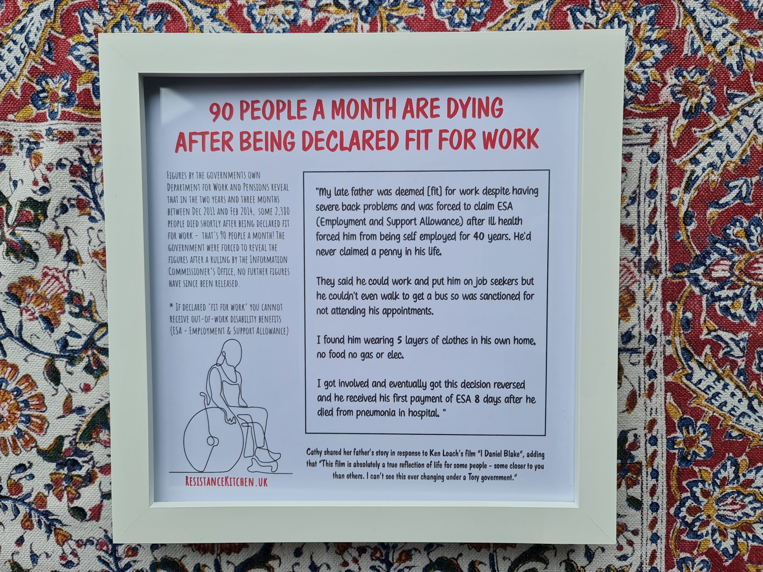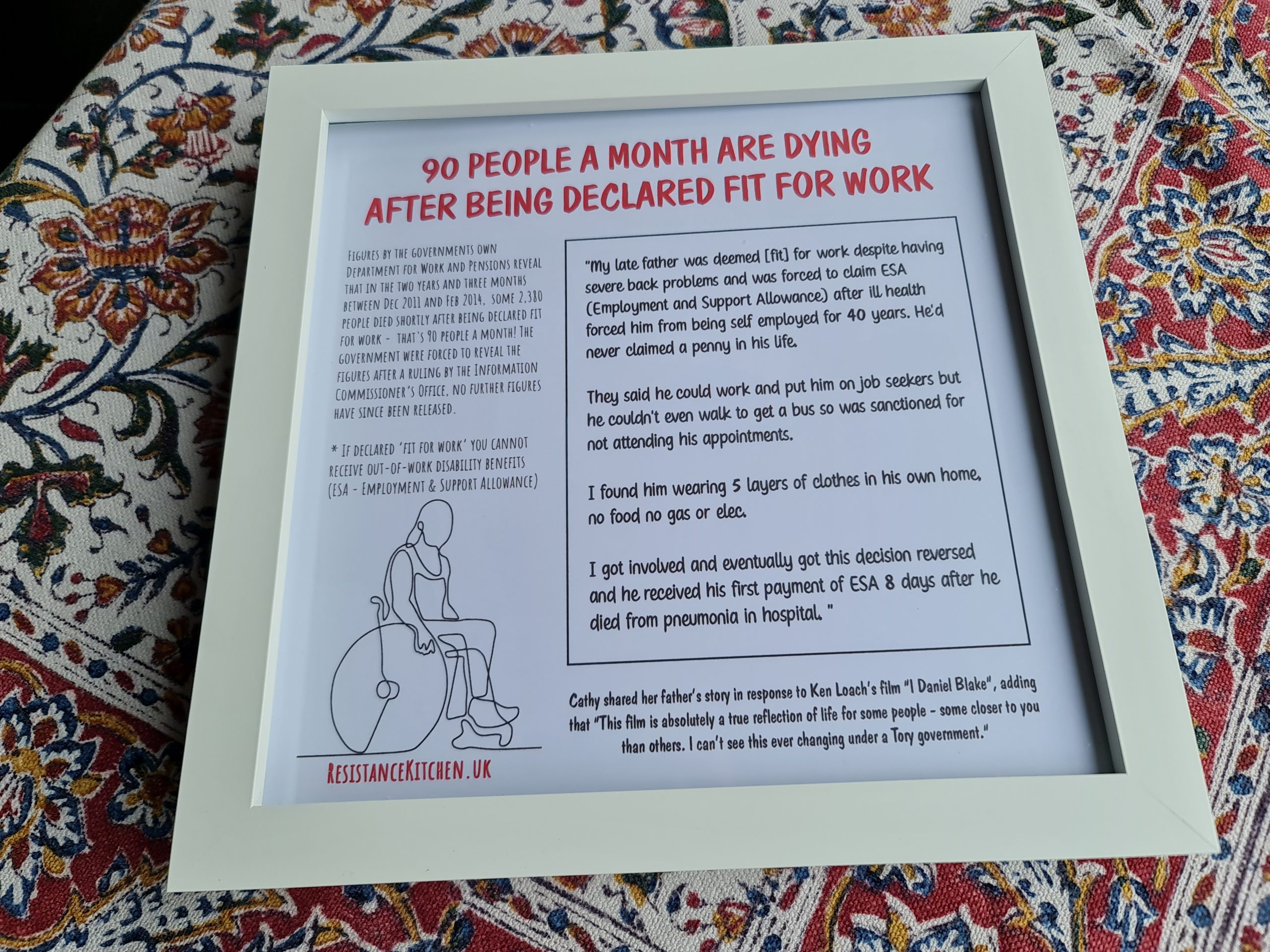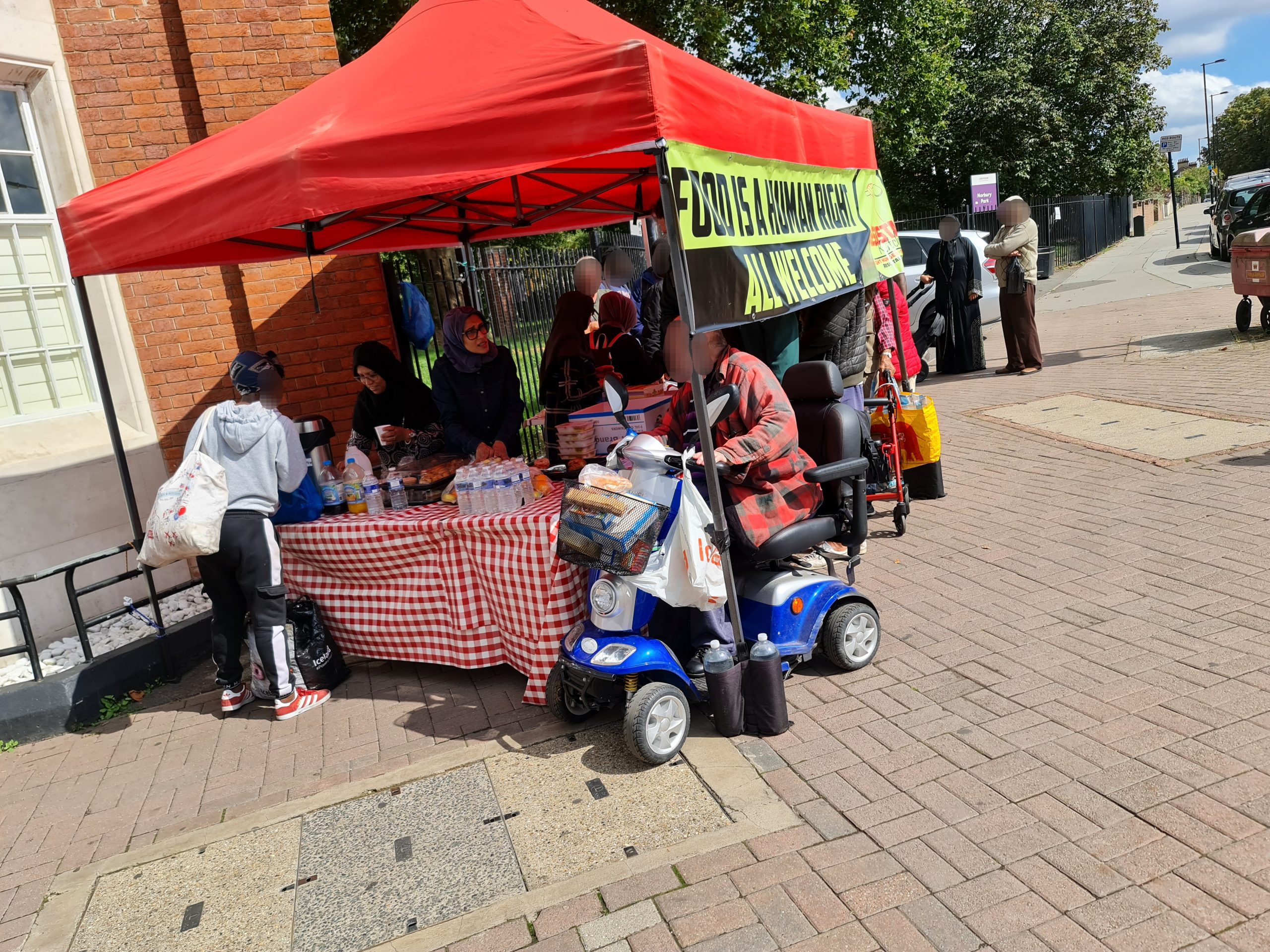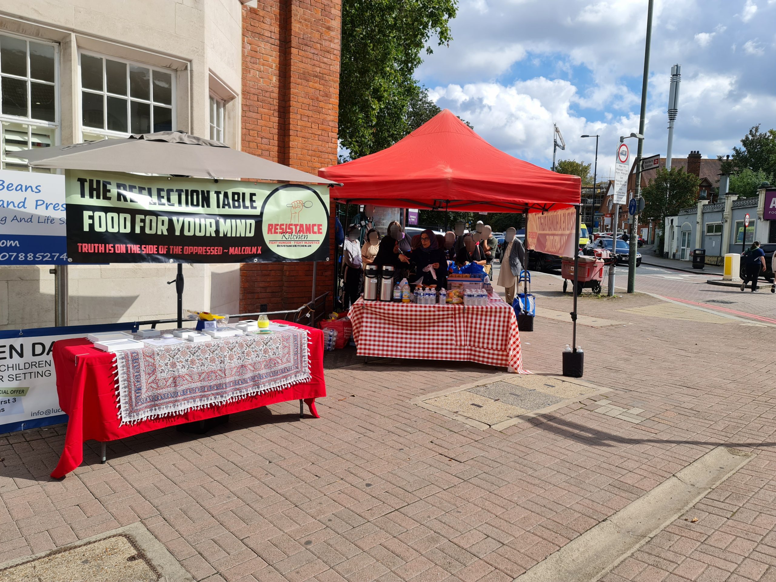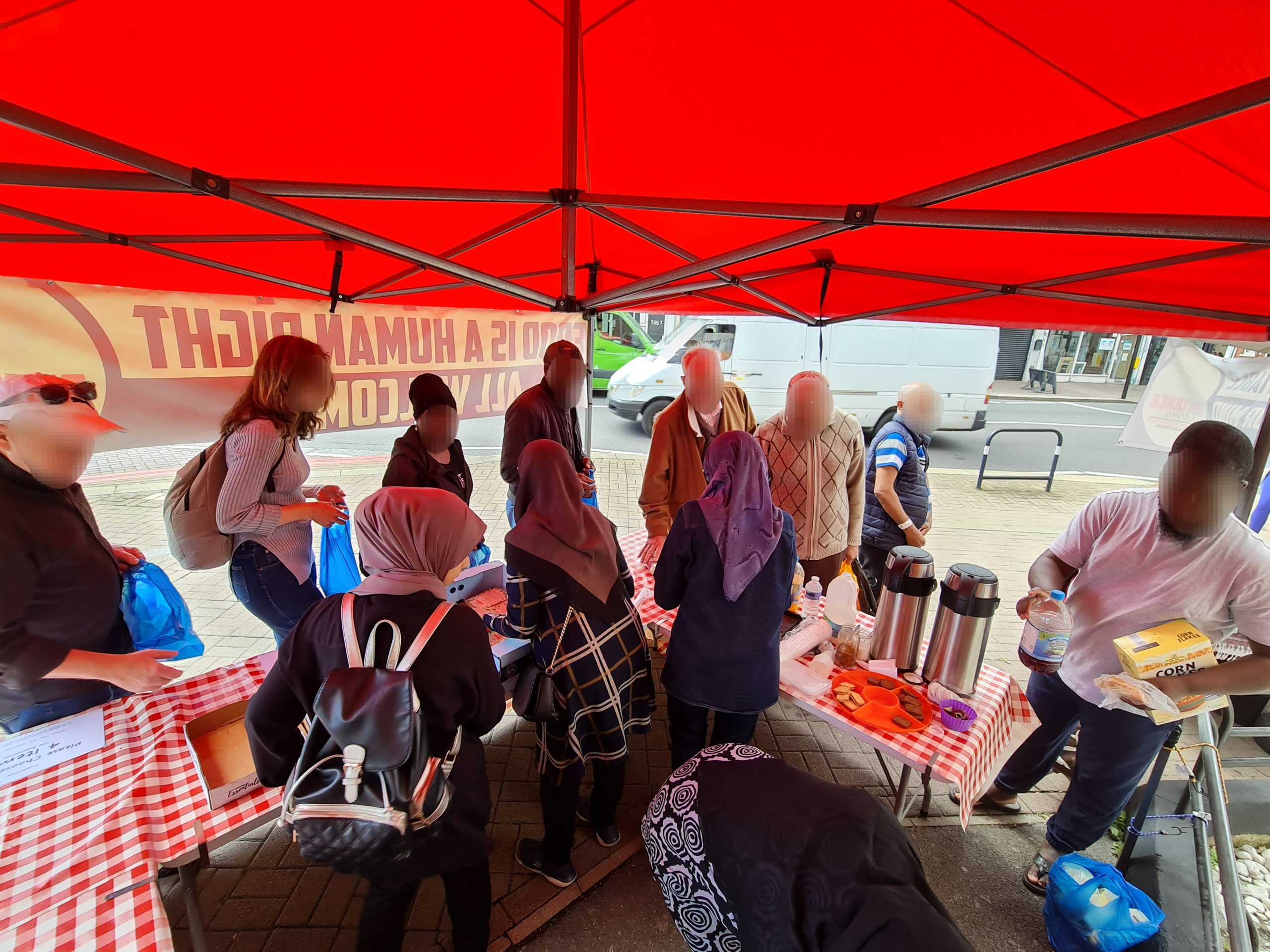 The Reflection Table now has a new 6ft signage “Food For Your Mind” to complement our ‘food for the body’ food stall. This has helped garner a lot more interest from the public. Many people came and looked at the display picking up frames to read peoples personal accounts of how austerity policies have impacted them, and took photos of it and the letter to our local MP displayed on the sandwich board next to it, which urges him not to support the two child policy which has pushed over a million children into poverty.