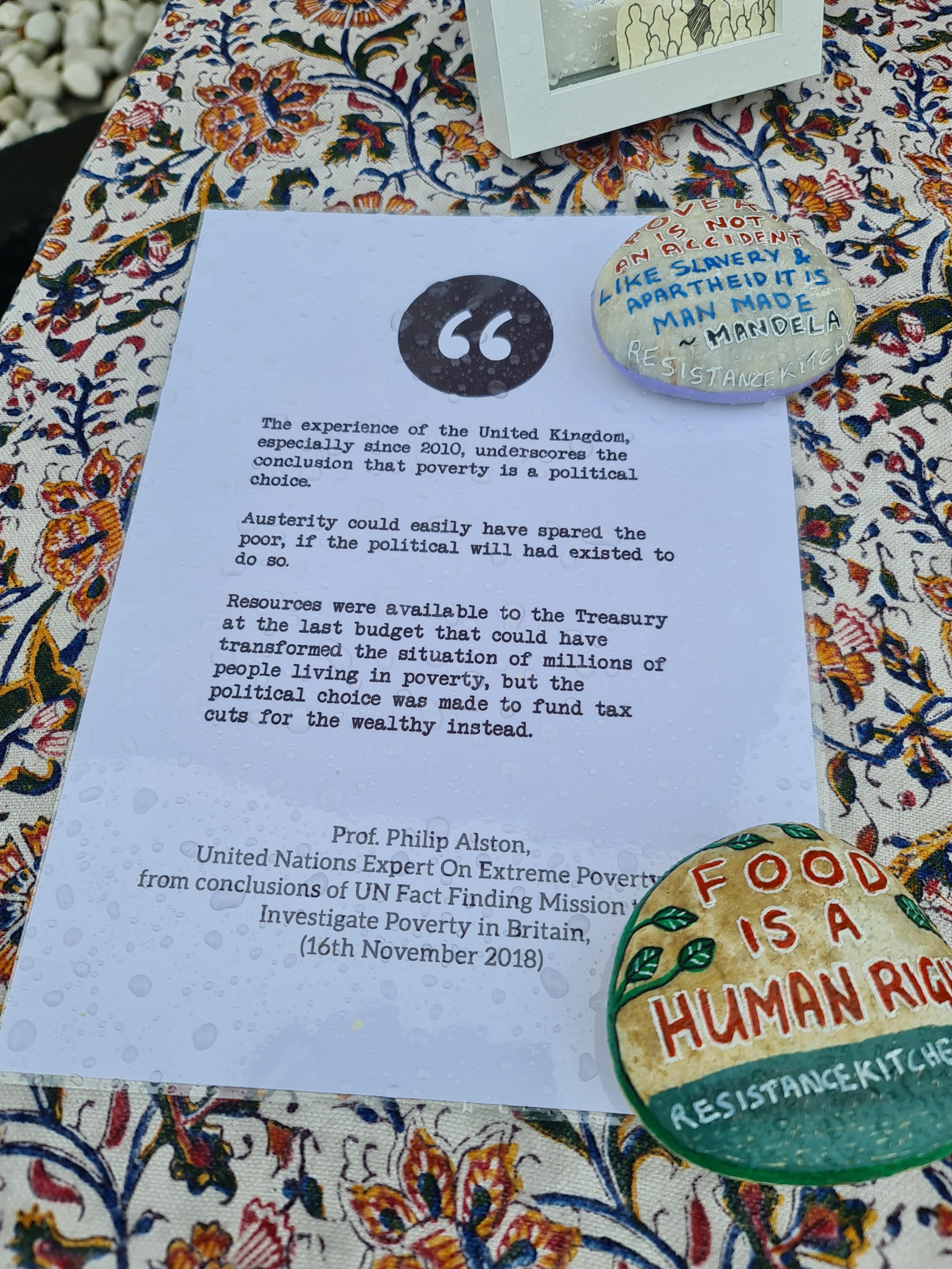 In case you haven’t noticed, we have a Reflection Table and a large sandwich board next to the food stall where we display facts about inequalities in our community like poverty and hunger, why they exist and ideas on how we can together work towards social justice. Something to reflect on, to get people thinking critically about the society we live in. It’s updated each week, please check it out.