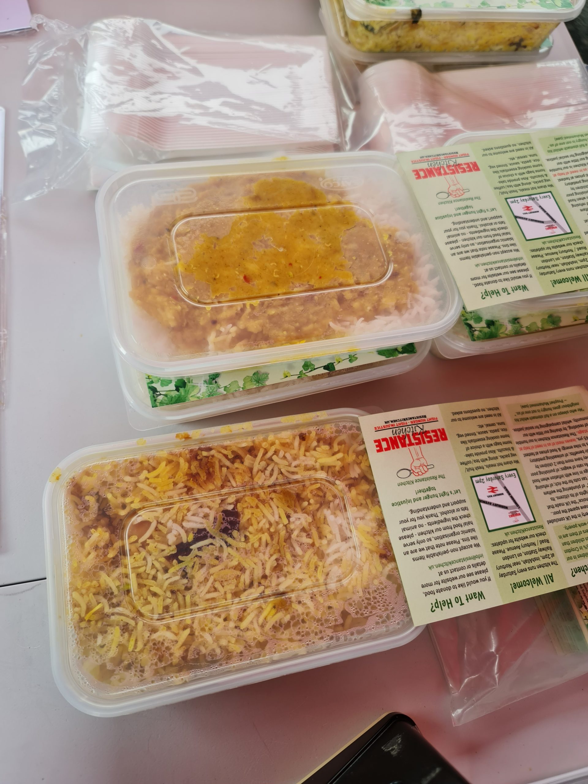 Following several requests last week for a vegetarian option, we have started serving vegetarian hot meals – daal curry with rice, alongside halal meat hot meals – chicken biryani.
