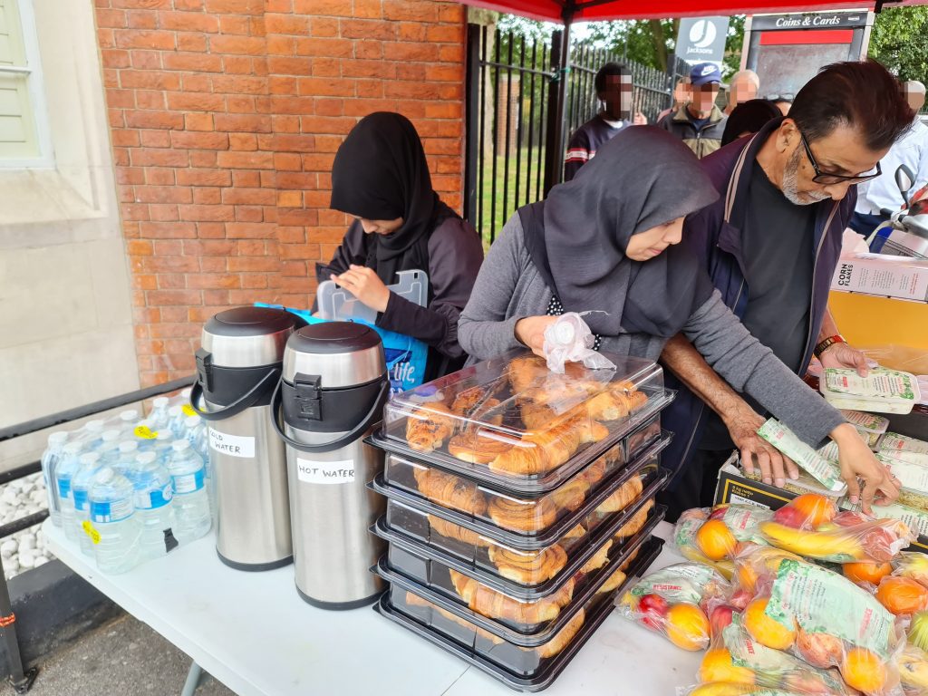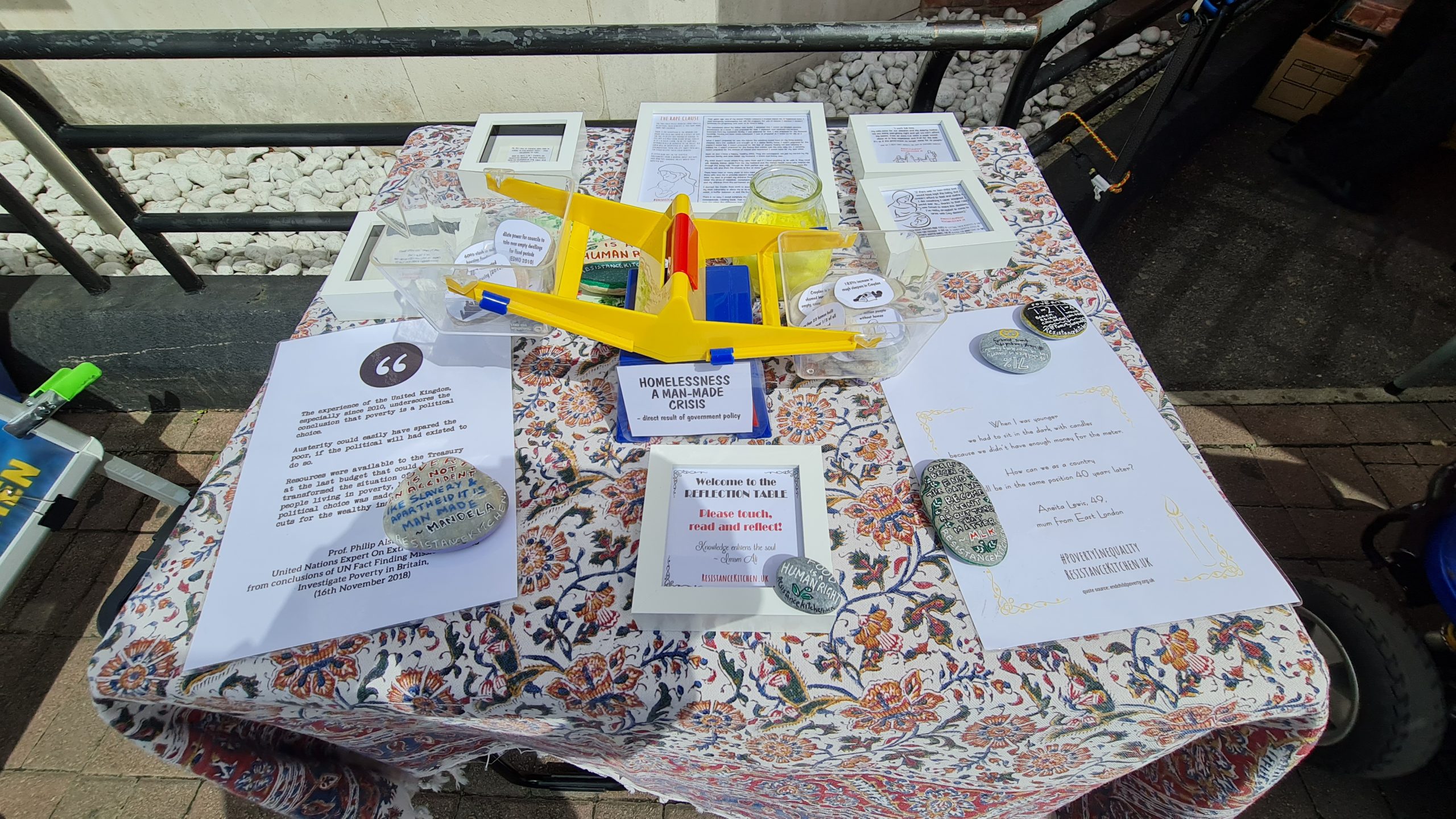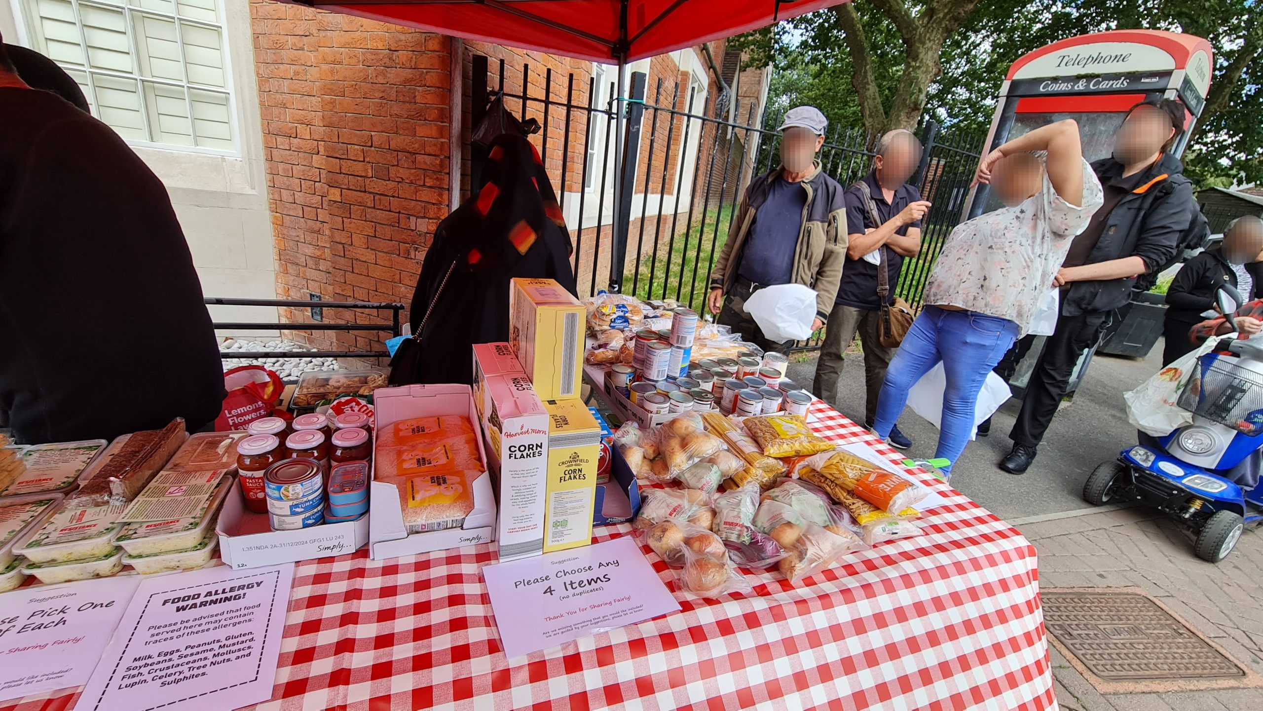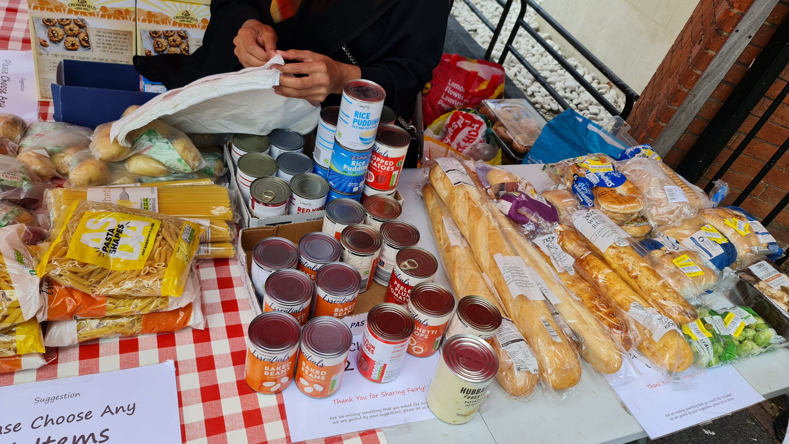 This week we also dumped the ugly queueing arrow signs. Our regulars now know there is an ordering to the food stalls – they collect their carrier bag from the right most first stall and they work their way around choosing what items they want to place in their bag at each stall, and at the end is the hot & cold drinks stand where, having finished their ‘shopping’ they can relax and chat with us over a hot cup of tea with biscuits and pastries. New comers take the lead from our regulars, so there is no need to keep those arrow signs which we were never happy with. Order is good, but it’s best if it comes from our guests rather than being imposed on them from above, by signs.