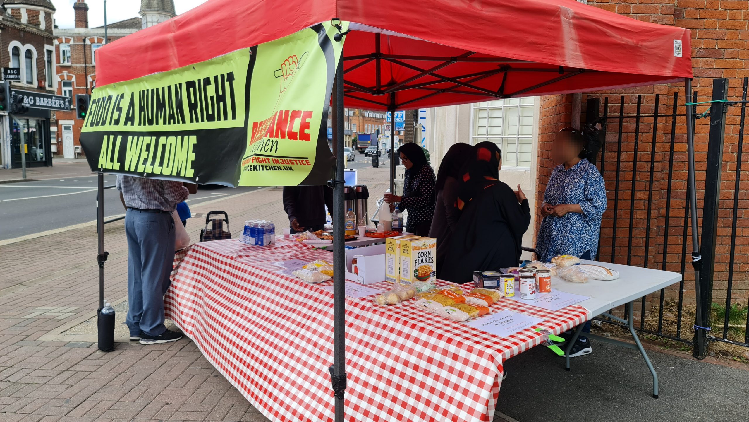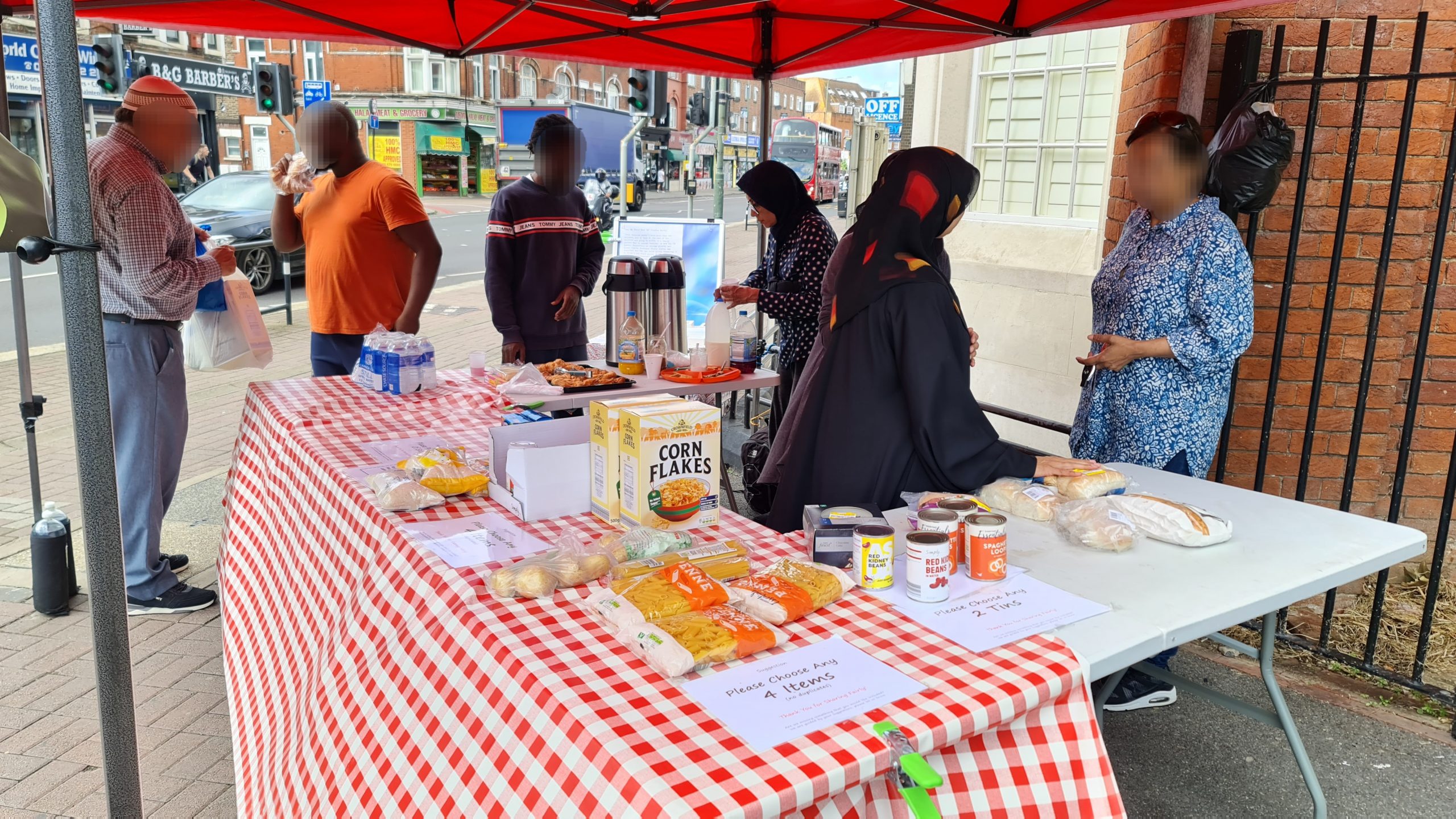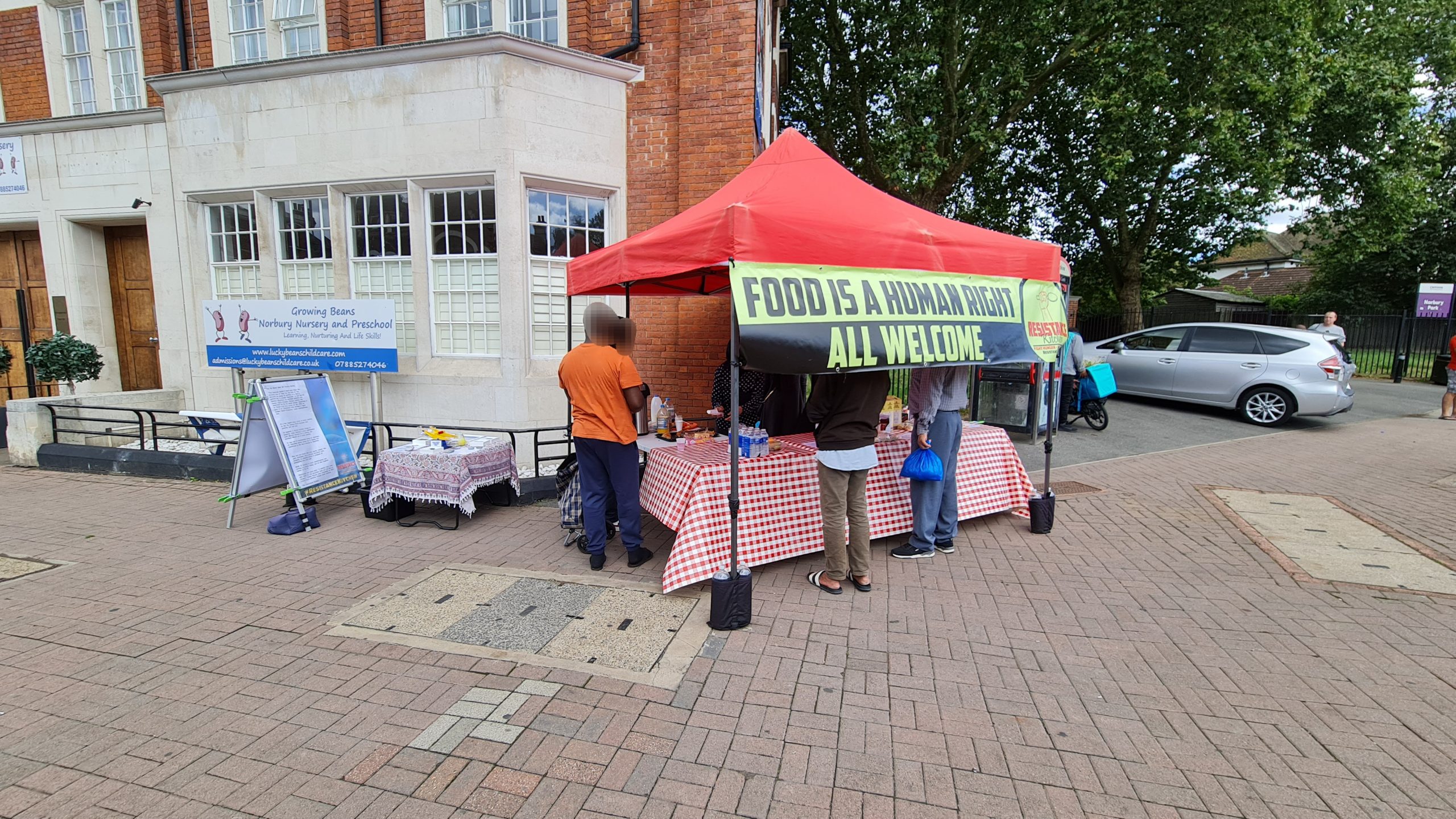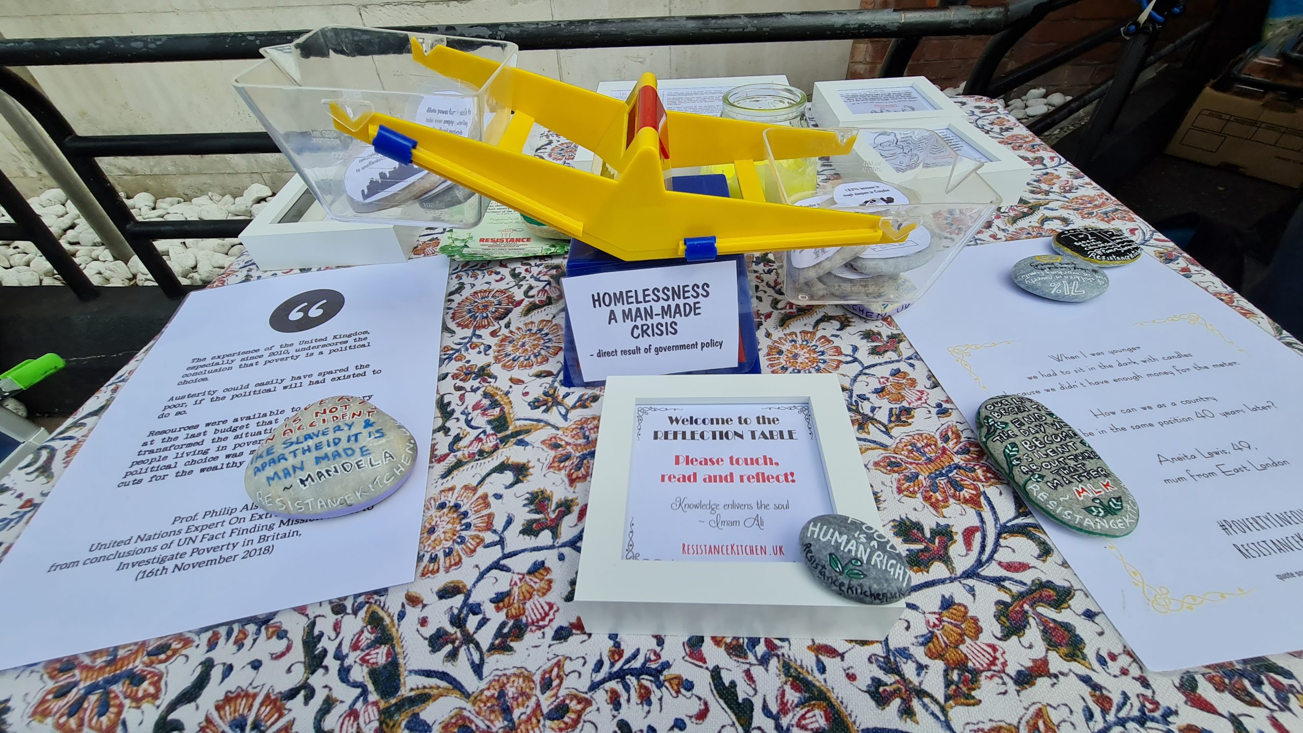 This week we also dumped the ugly queueing arrow signs. Our regulars now know there is an ordering to the food stalls – they collect their carrier bag from the right most first stall and they work their way around choosing what items they want to place in their bag at each stall, and at the end is the hot & cold drinks stand where, having finished their ‘shopping’ they can relax and chat with us over a hot cup of tea with biscuits and pastries. New comers take the lead from our regulars, so there is no need to keep those arrow signs which we were never happy with. Order is good, but it’s best if it comes from our guests rather than being imposed on them from above, by signs.