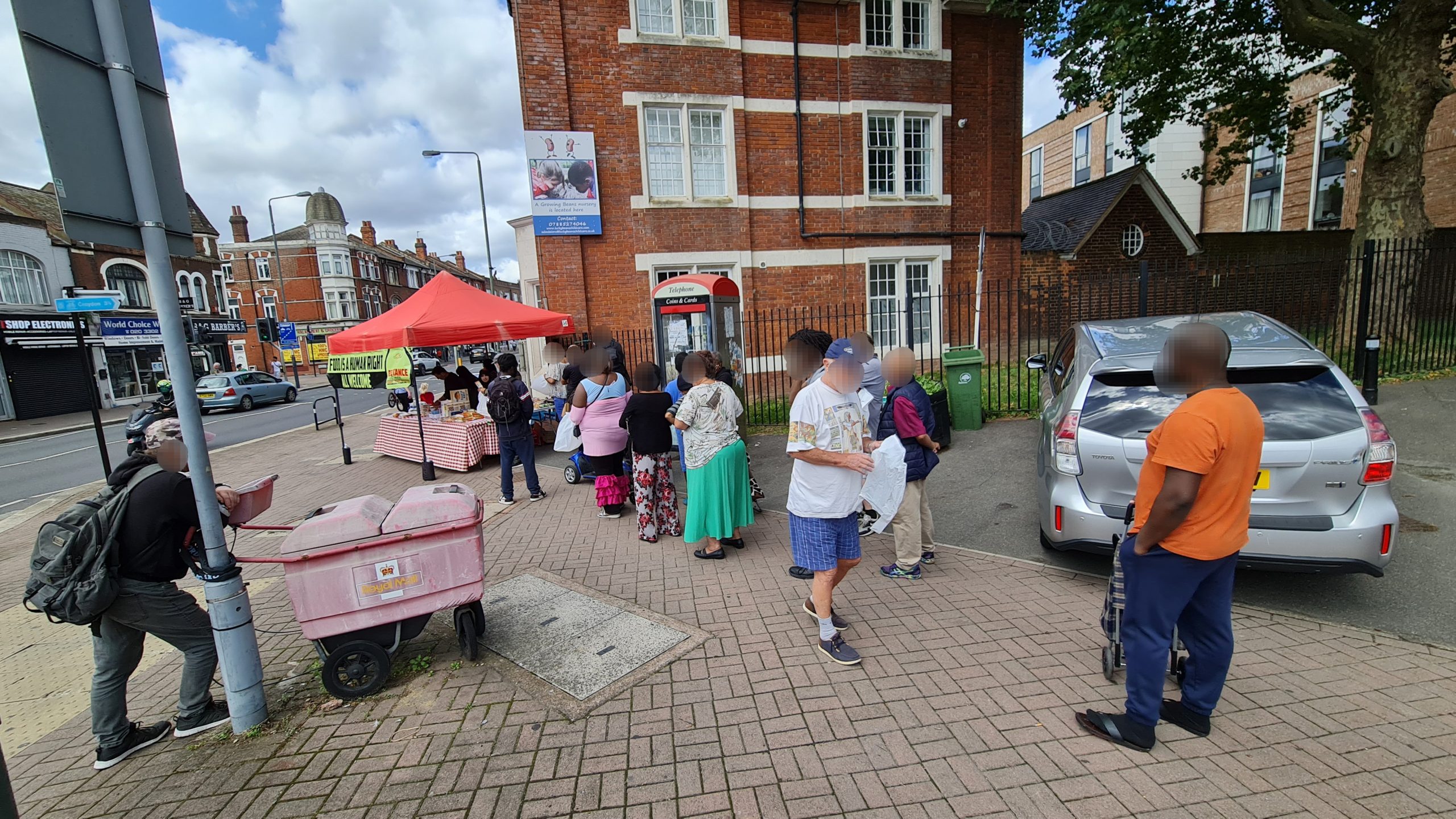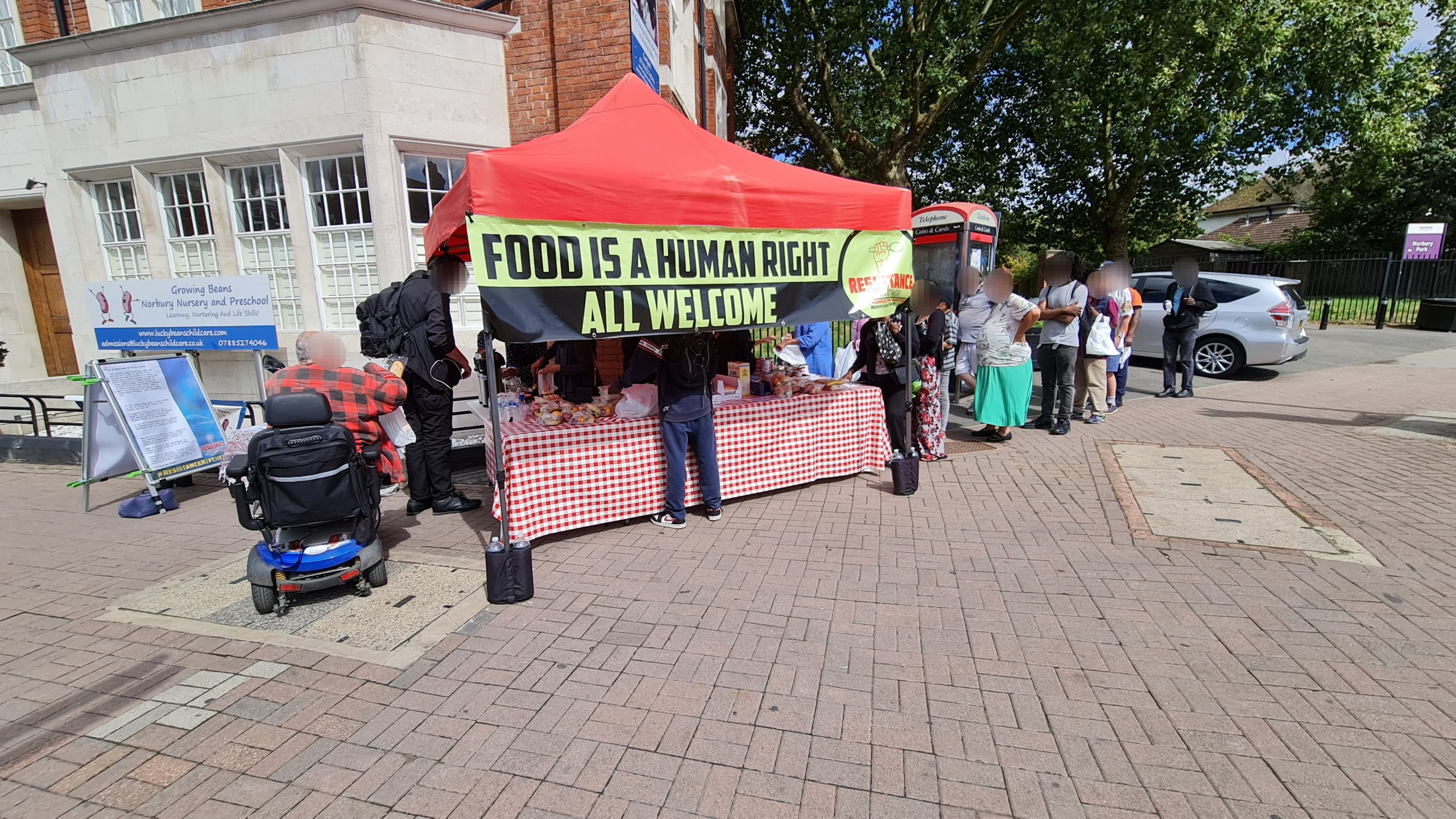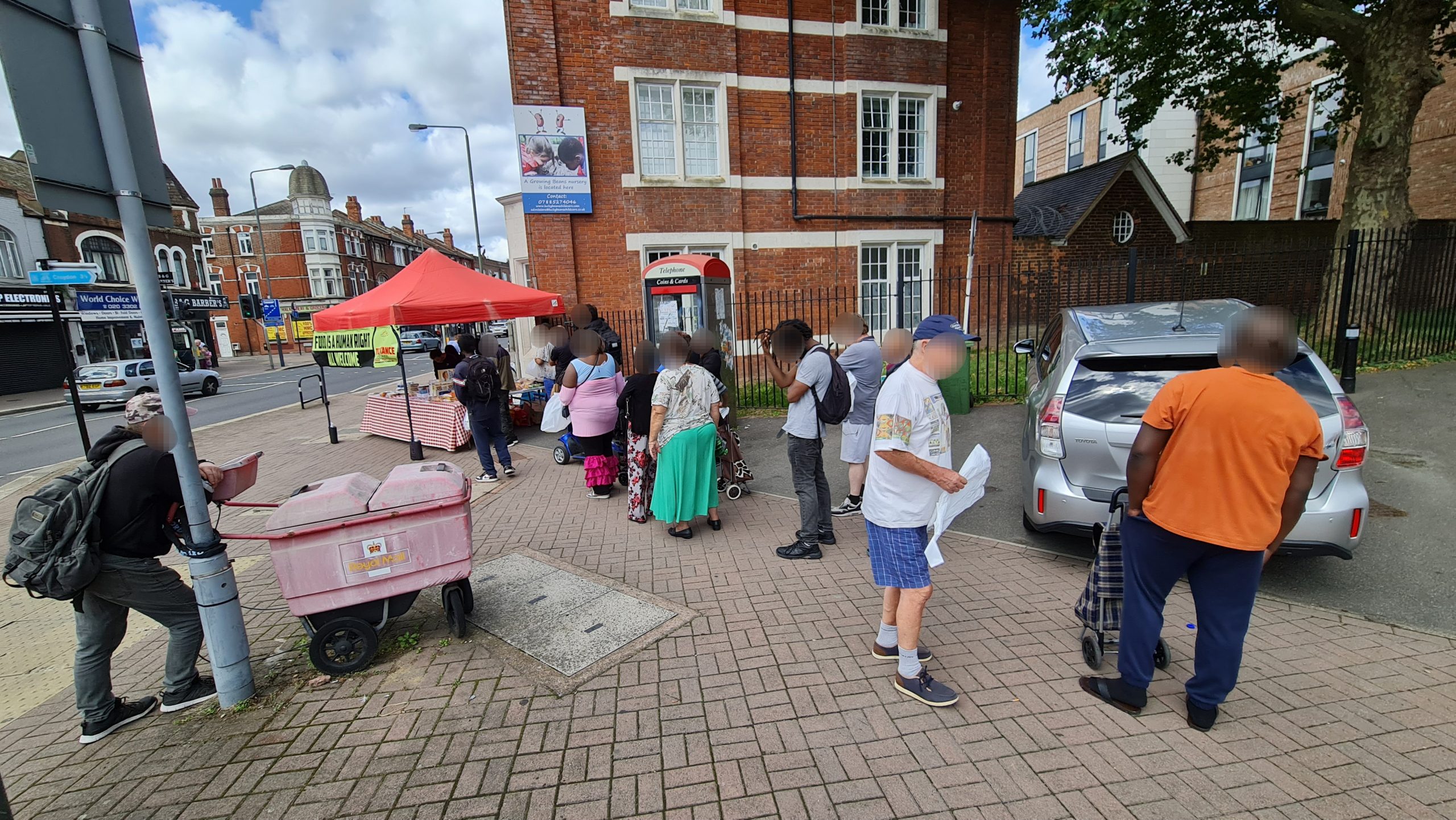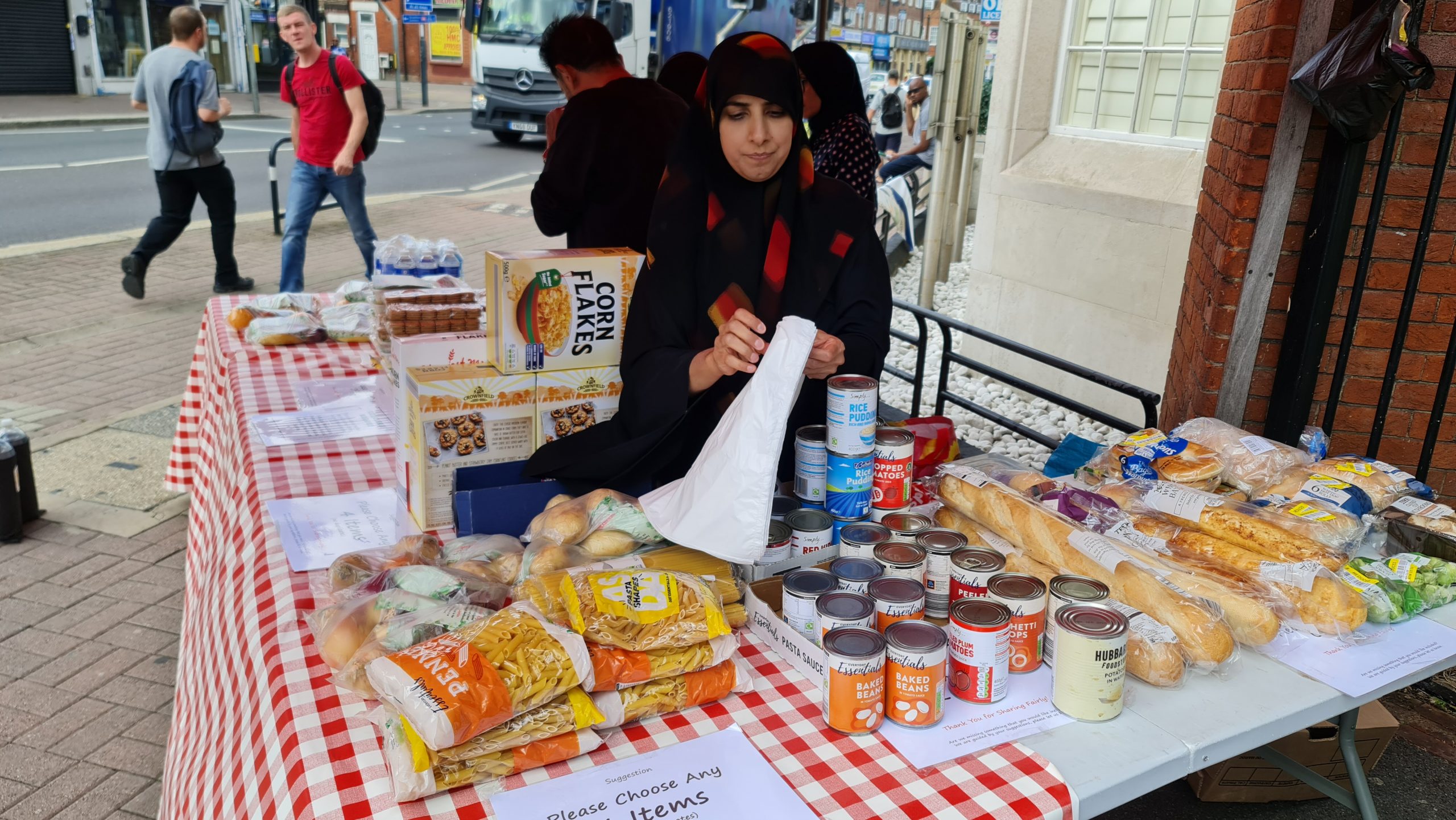 This week we also dumped the ugly queueing arrow signs. Our regulars now know there is an ordering to the food stalls – they collect their carrier bag from the right most first stall and they work their way around choosing what items they want to place in their bag at each stall, and at the end is the hot & cold drinks stand where, having finished their ‘shopping’ they can relax and chat with us over a hot cup of tea with biscuits and pastries. New comers take the lead from our regulars, so there is no need to keep those arrow signs which we were never happy with. Order is good, but it’s best if it comes from our guests rather than being imposed on them from above, by signs.