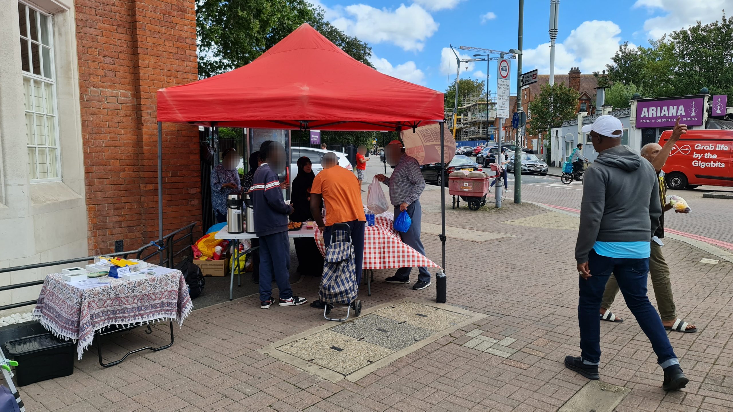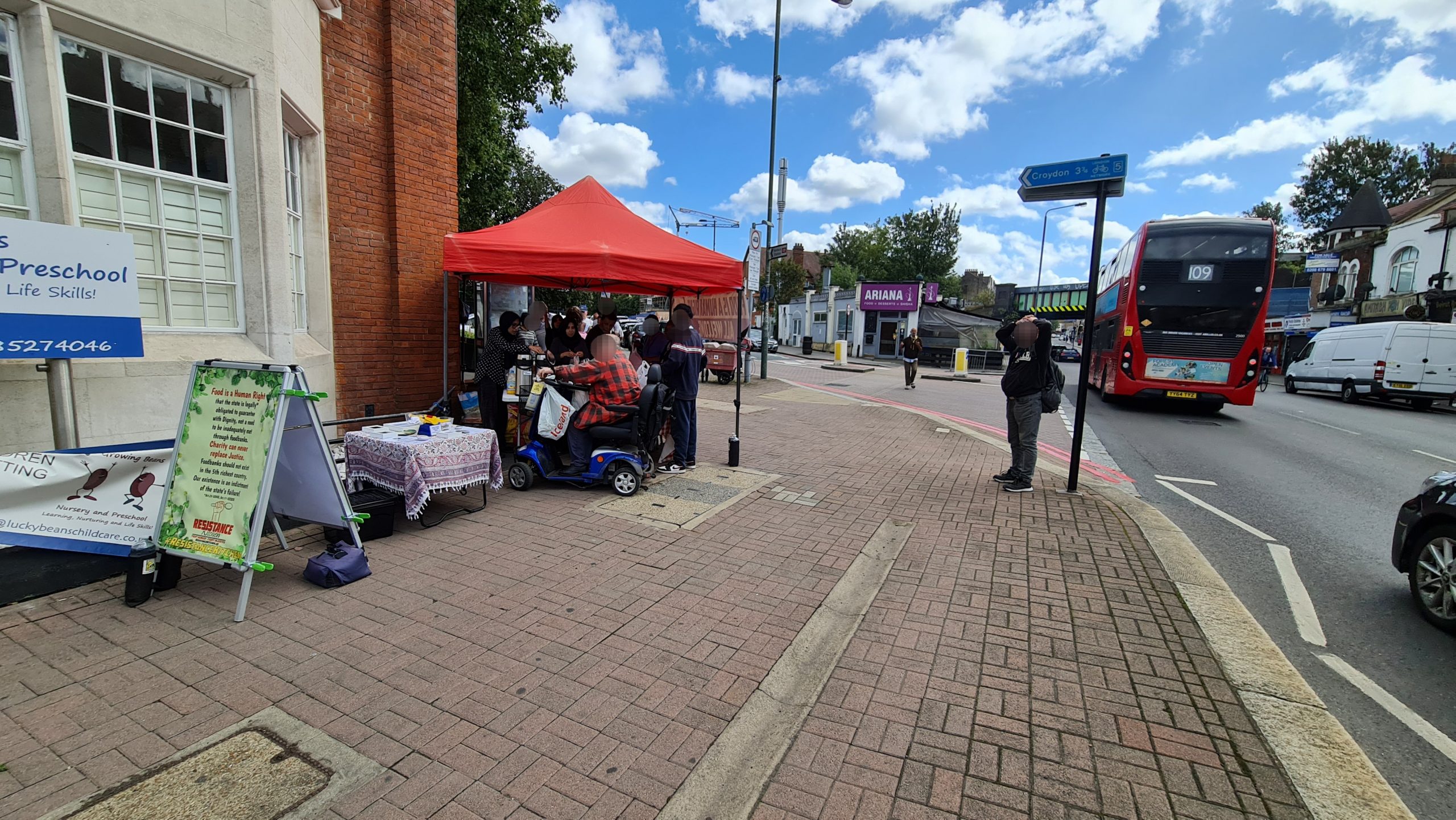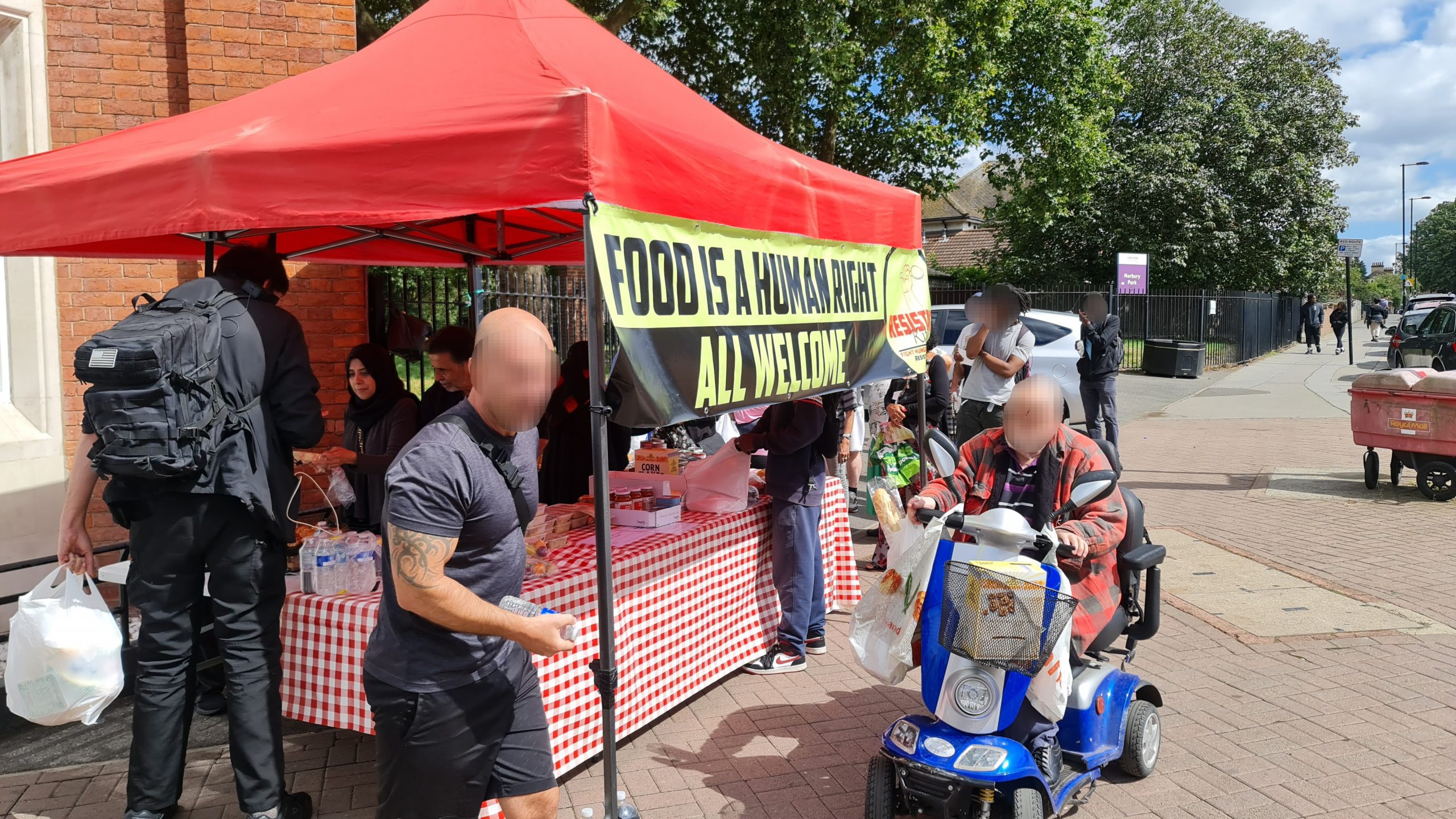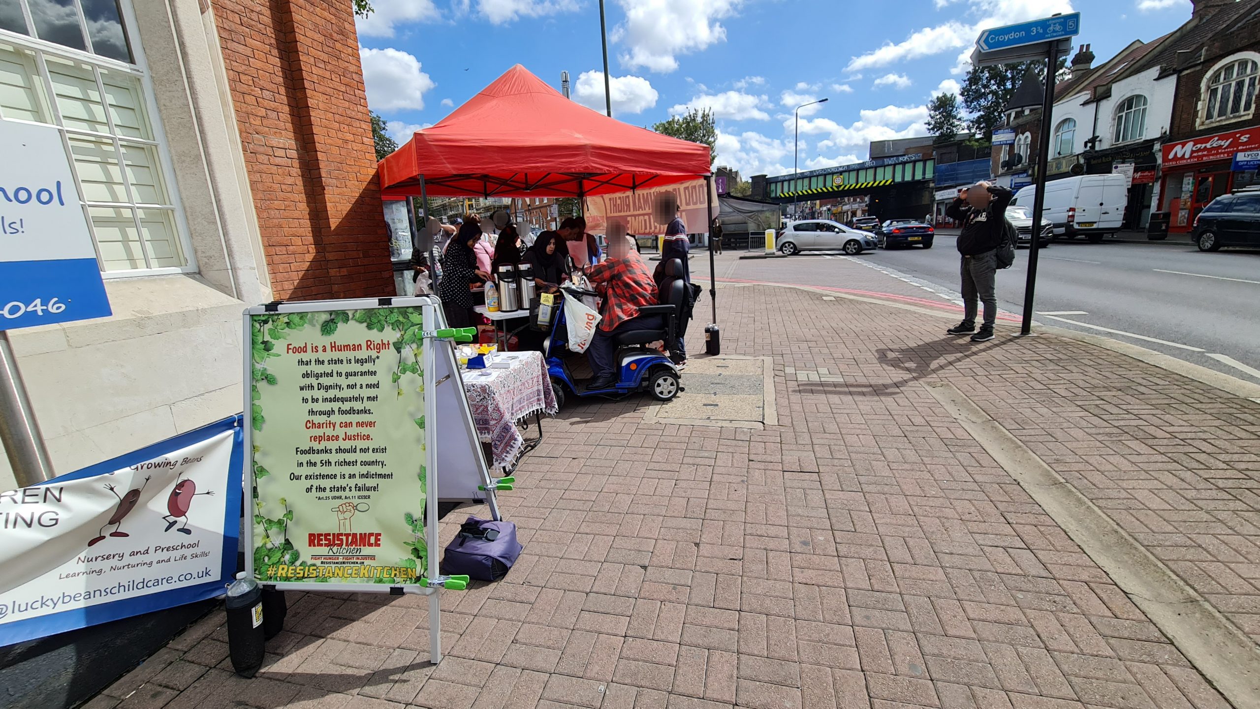 This week we also dumped the ugly queueing arrow signs. Our regulars now know there is an ordering to the food stalls – they collect their carrier bag from the right most first stall and they work their way around choosing what items they want to place in their bag at each stall, and at the end is the hot & cold drinks stand where, having finished their ‘shopping’ they can relax and chat with us over a hot cup of tea with biscuits and pastries. New comers take the lead from our regulars, so there is no need to keep those arrow signs which we were never happy with. Order is good, but it’s best if it comes from our guests rather than being imposed on them from above, by signs.
